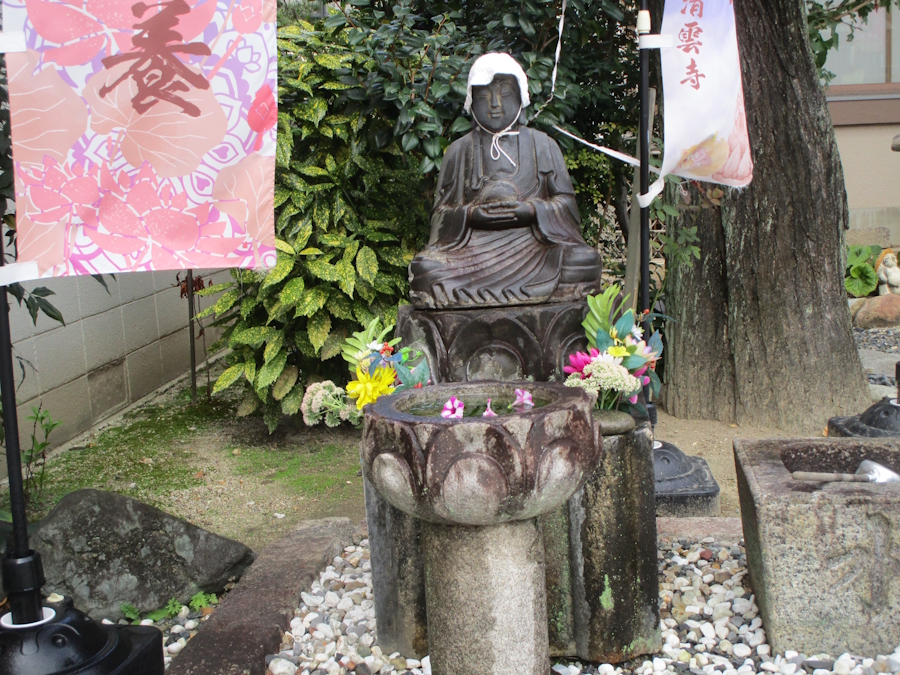 本堂脇には、寶珠地蔵尊(ほうじゅじぞうぞん)が穏やかなお顔で。